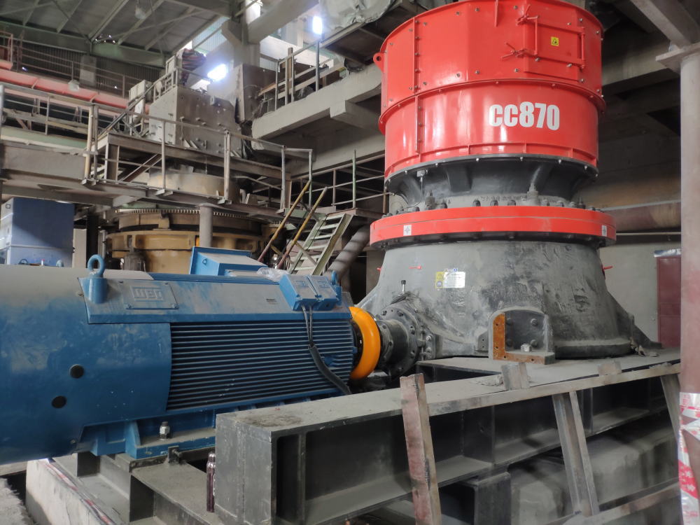 CC圓錐破碎機的破碎比率增多,產(chǎn)品粒度隨意性很強,大小可任意調(diào)節(jié)。圓錐破的破碎力與該機的偏心靜力矩及轉(zhuǎn)速有著一定的關(guān)系。調(diào)節(jié)破碎腔的間隙,可很方便地調(diào)節(jié)所需的破碎比